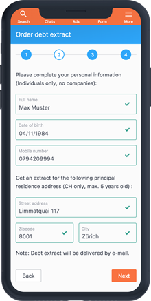 When you apply for an apartment on Flatfox, you can directly use the electronic debt extract.