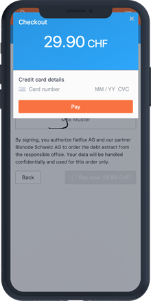 Easily sign your order online and pay with your credit card. The debt extract will be sent as PDF by email.